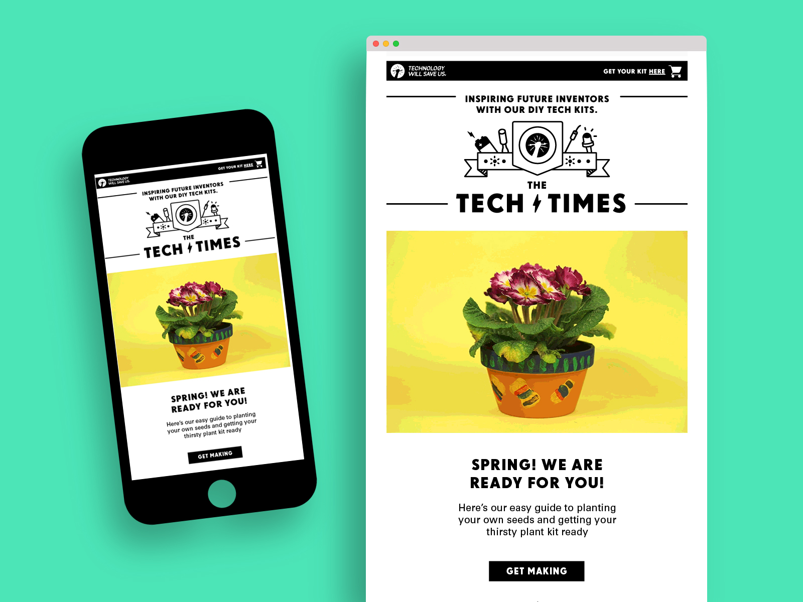 Technology Will Save Us wanted a fun way to talk to their audience every week. They wanted to encourage more parents to get making, coding and creating with their children using Tech Will Save Us kits.So, we created the Tech Times newsletter! We crammed it full of entertaining blogs and all the latest news stories from Technology Will Save Us HQ and from the world of STEM for kids.